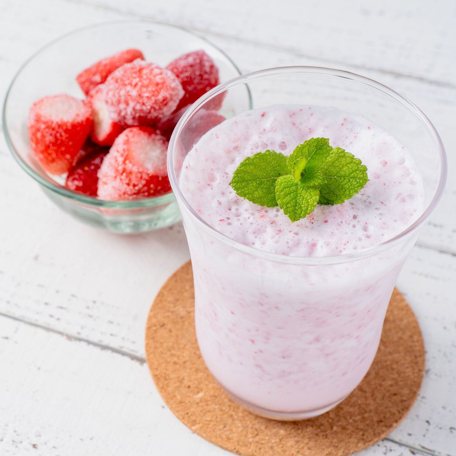 冷凍いちごを牛乳や豆乳と一緒にミキサーにかければ、濃厚で香り高いスムージーに。素材がやわらかいから、なめらかで口当たりも上品。甘さを足さなくても、ほどよい酸味と果実の自然な甘みが調和します。見た目にも美しい淡いピンク色が、テーブルを明るく彩り、夏のひとときを心地よく演出します。